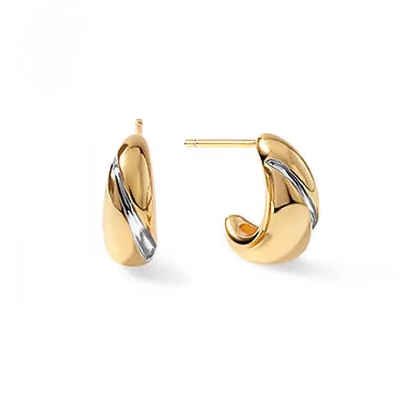 Crafted from 925 sterling silver and finished with a radiant 18k gold plating, the Dune Earrings embody modern sophistication with an organic twist. Their fluid, sculptural form is accentuated by a graceful silver wave that flows seamlessly across the golden surface, creating a harmonious two-tone contrast. Lightweight yet striking, these earrings add a bold, minimalist touch to any look—perfect for day-to-night wear.